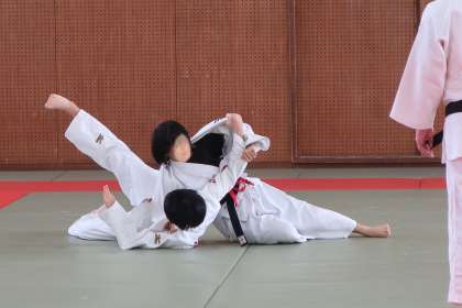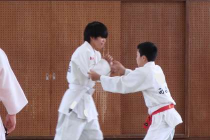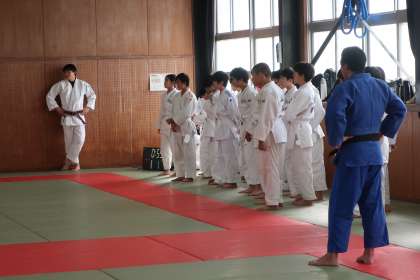 みよし北中学校柔道部の皆さんに来校していただき、合同稽古が行われていました。途中、試合形式での稽古もあり、全員が本気で今の力を出し切っていました。