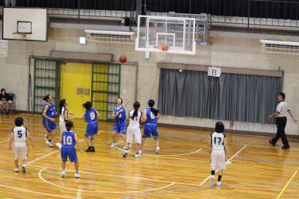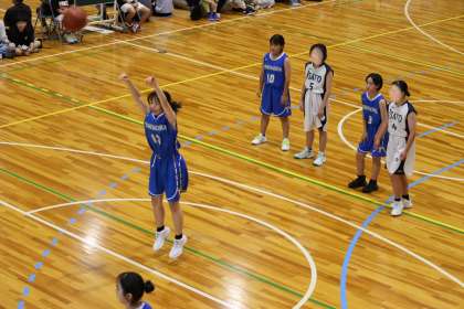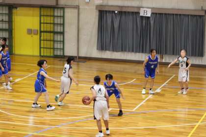 写真は、朝日丘中学校で開催されたバスケットボールの大会の様子です。