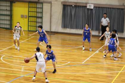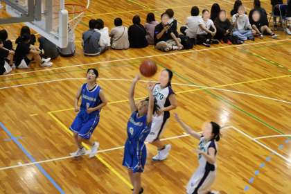 写真は、朝日丘中学校で開催されたバスケットボールの大会の様子です。