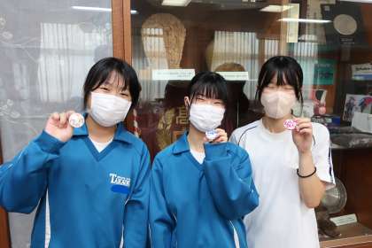 今回は、先日行われた「ひまわり懇談会」でボランティアスタッフとして活動してくれた生徒に、学校オリジナル缶バッジ(=「WE LOVE たかおか」バッジ)が配付されました。