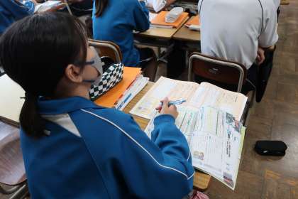 ことばのきまりの学習で、用言(動詞・形容詞・形容動詞)の活用について学んでいました。
