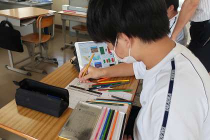 10/1 1,2学級 大切な情報源 3 公開日 2025/10/01 更新日 2025/10/01 各学年から 1,2学級の社会の授業の様子です。 興味のある国を調べ上げ、特徴的なイラストを描いています。また読み札には、重要な情報をわかりやすく読みやすいものを考えていました。