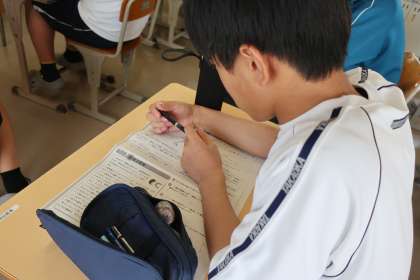 読み物の基本的な事柄を身につけるため、本文に書かれていることが「事実」なのか「感想」なのかを見分ける学習に取り組んでいました。
