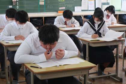 10/2 3-5 学習診断テスト 2 公開日 2025/10/02 更新日 2025/10/02 各学年から 本日行われた「第2回学習診断テスト」・3年5組の様子です。 これまでの学習の成果を発揮しようと、全員が真剣に取り組んでいます。 入試本番に向けた弱点発見のきっかけにもしてほしいと思います。
