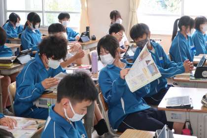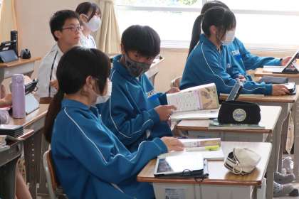 1年5組の社会・歴史分野の授業の様子です。