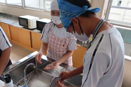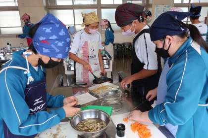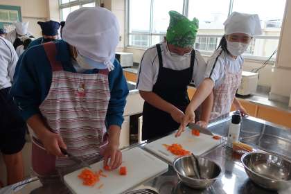 「安全に調理実習を行おう」をテーマに、いわしの手開き、ごぼうのささがき、にんじんの千切りの3種類の活動に取り組んでいました。