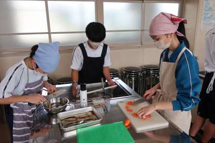 「安全に調理実習を行おう」をテーマに、いわしの手開き、ごぼうのささがき、にんじんの千切りの3種類の活動に取り組んでいました。