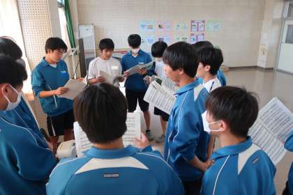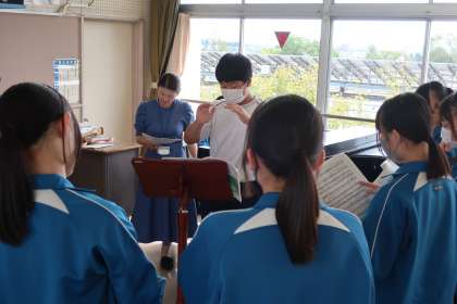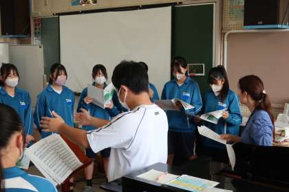 クラスの合唱曲の練習です。パートごとに丁寧で熱心な指導が入り、パートリーダーを中心とした練習にも熱が入っていました。