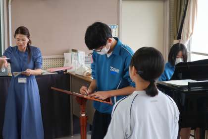 クラスの合唱曲の練習です。パートごとに丁寧で熱心な指導が入り、パートリーダーを中心とした練習にも熱が入っていました。