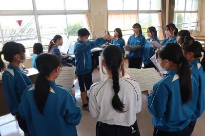 クラスの合唱曲の練習です。パートごとに丁寧で熱心な指導が入り、パートリーダーを中心とした練習にも熱が入っていました。