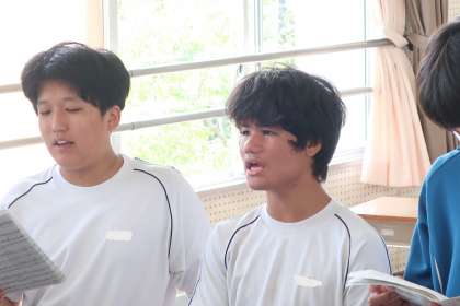 クラスの合唱曲の練習です。パートごとに丁寧で熱心な指導が入り、パートリーダーを中心とした練習にも熱が入っていました。