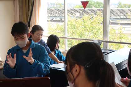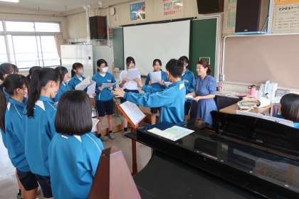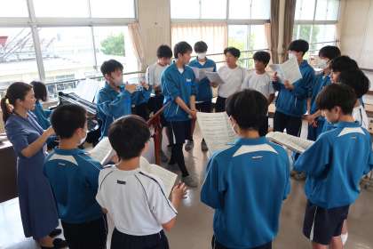 クラスの合唱曲の練習です。パートごとに丁寧で熱心な指導が入り、パートリーダーを中心とした練習にも熱が入っていました。
