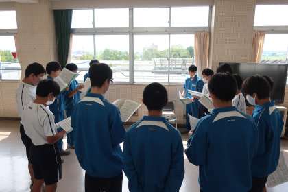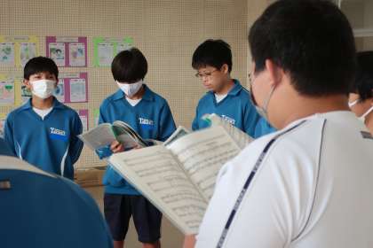 クラスの合唱曲の練習です。パートごとに丁寧で熱心な指導が入り、パートリーダーを中心とした練習にも熱が入っていました。