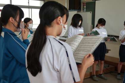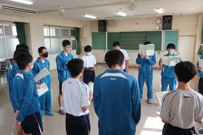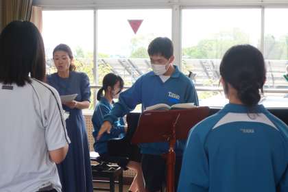 クラスの合唱曲の練習です。パートごとに丁寧で熱心な指導が入り、パートリーダーを中心とした練習にも熱が入っていました。