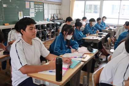 10/3 2-4 大切だと感じていること 3 公開日 2025/10/03 更新日 2025/10/03 各学年から 2年4組の英語の授業の様子です。 「ホームステイの体験談で主人公が大切だと感じていることは?」というテーマで、本文を訳しなら読み込んでいました。