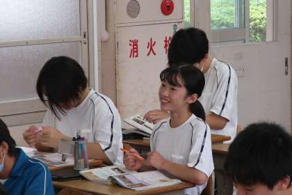 10/4 1-2 鎌倉時代の文化と宗教 4 公開日 2025/10/05 更新日 2025/10/05 各学年から 昨日の1年2組の社会・歴史分野の授業の様子です。 「鎌倉時代の文化と宗教をおぼえよう」をテーマに、仲間への解説を通して、重要語句の意味や内容を理解しようと学習に取り組んでいました。