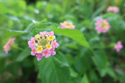 職員室前の花壇で、ランタナという花がひっそりと咲いています。見た目と違い、暑さにとても強く、繁殖力もある植物です。花言葉は「心変わり」「協力」「合意」などがあります。「心変わり」は、ランタナの花が咲き始めから色が変わり、きれいなグラデーションに変化することが由来になっています。また「協力」「合意」は、小さな花が集まって半球状に咲き誇る様子が由来となっています。合唱コンを控え、仲間と力を合わせて活動する高中生にピッタリの花言葉です。(写真上)