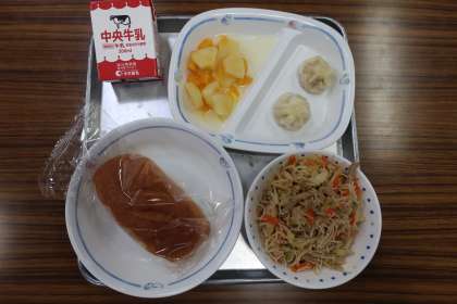 10/10 今日の給食 公開日 2025/10/10 更新日 2025/10/10 特別活動 今日の献立は ————— 炒めビーフン、ショウロンポウ、ミックスフルーツ、米粉パン、牛乳 でした。 *エネルギー:804kcal たんぱく質:33.6g