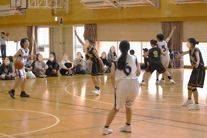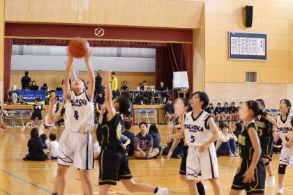 写真は、浄水中学校で開催されたバスケットボールの大会の様子です。