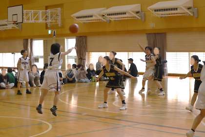 写真は、浄水中学校で開催されたバスケットボールの大会の様子です。