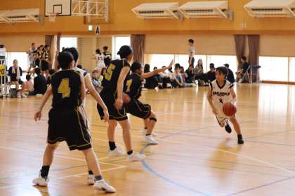 写真は、浄水中学校で開催されたバスケットボールの大会の様子です。