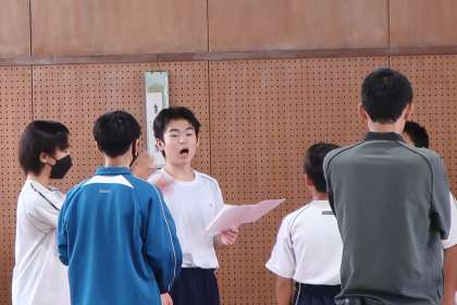 中学校で初めての合唱コンに向け、先輩たちの教室から聞こえる歌声に刺激を受けながら、懸命に練習しています。