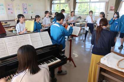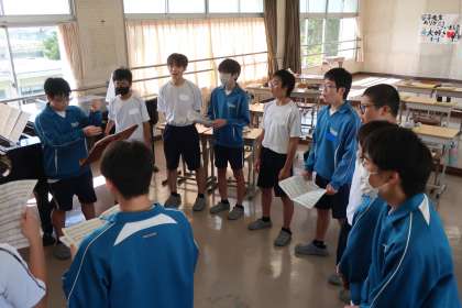 クラスの合唱曲の練習です。パートごとに丁寧で熱心な指導が入り、パートリーダーを中心とした練習にも熱が入っていました。
