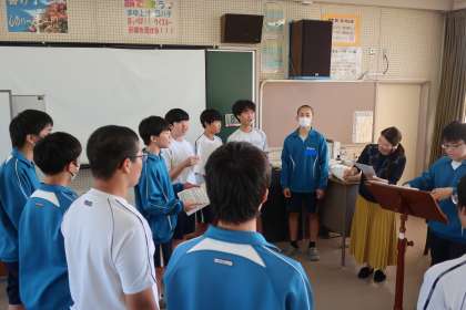 クラスの合唱曲の練習です。パートごとに丁寧で熱心な指導が入り、パートリーダーを中心とした練習にも熱が入っていました。