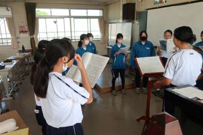 クラスの合唱曲の練習です。パートごとに丁寧で熱心な指導が入り、パートリーダーを中心とした練習にも熱が入っていました。