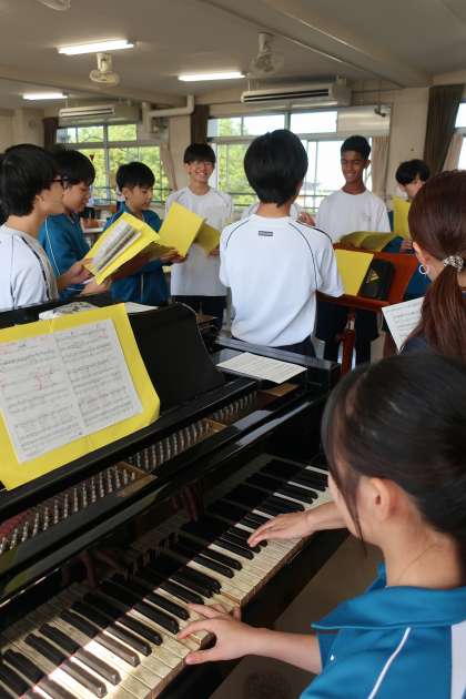 クラスの合唱曲の練習です。パートごとに丁寧で熱心な指導が入り、パートリーダーを中心とした練習にも熱が入っていました。