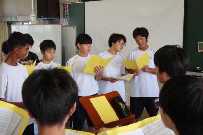 クラスの合唱曲の練習です。パートごとに丁寧で熱心な指導が入り、パートリーダーを中心とした練習にも熱が入っていました。