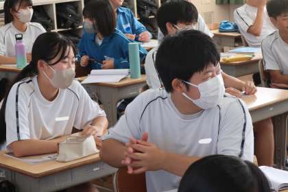 10/9 3-1 慣性の感性を磨く? 4 公開日 2025/10/09 更新日 2025/10/09 各学年から 3年1組の理科の授業の様子です。 「『慣性』の感性を磨こう」をテーマに、慣性の法則について学んでいました。状況を分かりやすく説明しようと、必死に考えている様子が印象的でした。