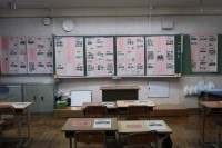 「忘れ物をした先生に、それを届ける奥さんは間に合うか」を問う文章問題で、答えにたどり着く解き方をグループで話し合い、間に合うか・間に合わないかを導き出していました。