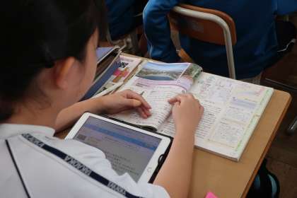 「鎌倉幕府のすごいところを発見しよう」をテーマに、各自が調べた内容を共有し、理解を深めていました。