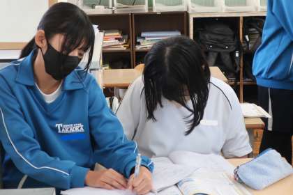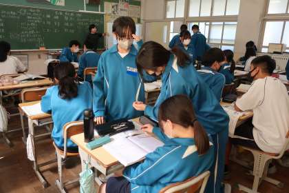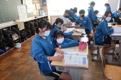 「浮力と体積の関係」の学習で、「完全に水中に沈めた物体に加わる浮力を求めよう」をテーマに、演習問題に取り組んでいました。
