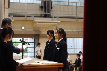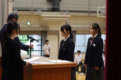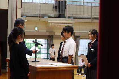 先日認証された生徒会役員に引き続き、今回は、各委員会委の委員長、室長、書記、議員の認証です。