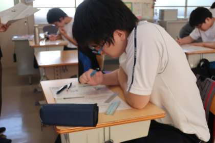 「文脈を意識しながら文を読もう」をテーマに、プリントでの学習に取り組んでいました。