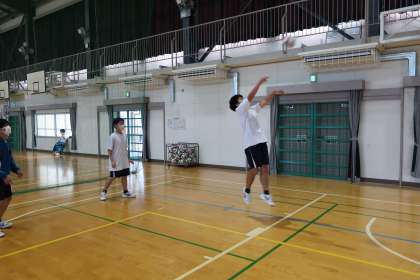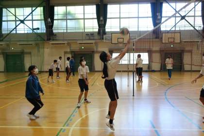 バレーボールの学習で、複数のチームとゲームで対戦していました。女子チームが男子チームから得点でき、喜んでいる姿が印象的でした。