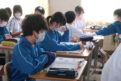 「語順を意識して疑問文を作っていこう」をテーマに、ALTのアドバイスを受けながら学習に取り組んでいました。