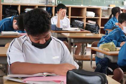 「語順を意識して疑問文を作っていこう」をテーマに、ALTのアドバイスを受けながら学習に取り組んでいました。