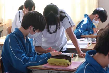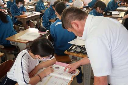 「語順を意識して疑問文を作っていこう」をテーマに、ALTのアドバイスを受けながら学習に取り組んでいました。