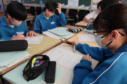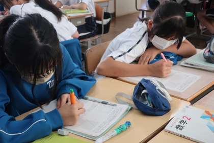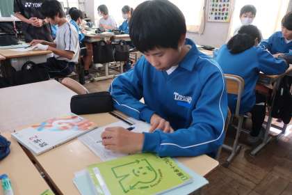 一次方程式の学習で、図形上を動く点(動点)によって面積がどう変わっていくかをイメージしながら考えていました。
