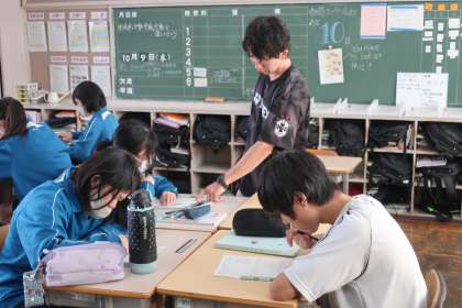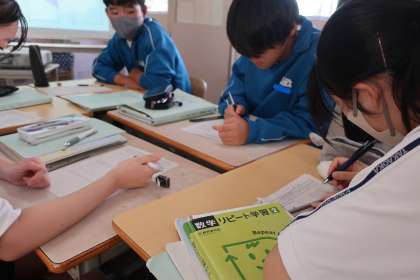 10/11 2-4 動点 4 公開日 2025/10/11 更新日 2025/10/11 各学年から 2年4組の数学の授業の様子です。 一次方程式の学習で、図形上を動く点(動点)によって面積がどう変わっていくかをイメージしながら考えていました。