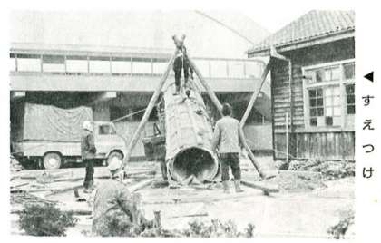 戦後の物のない頃に、りっぱな中学校を建設された当時の人々の努力は、並々ならぬご苦労があったと思われます。また、緑に恵まれた校舎の木々も、各部落で植樹する分担場所を決めて、部落の役員さんや父兄の協力によって作られたと記憶していますが、一生懸命に作業されている姿が時々目に浮かびます。