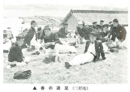戦後の物のない頃に、りっぱな中学校を建設された当時の人々の努力は、並々ならぬご苦労があったと思われます。また、緑に恵まれた校舎の木々も、各部落で植樹する分担場所を決めて、部落の役員さんや父兄の協力によって作られたと記憶していますが、一生懸命に作業されている姿が時々目に浮かびます。