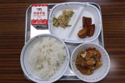 ピリット厚揚げ、棒々鶏(バンバンジー)、大学いも、ごはん、牛乳 でした。
