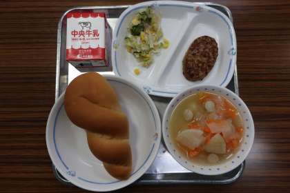 10/22 今日の給食 公開日 2025/10/22 更新日 2025/10/22 特別活動 今日の献立は ————— ポトフ、ツナサラダ、ハンバーグ、ツイストパン、牛乳 でした。 *エネルギー:830kcal たんぱく質:30.9g