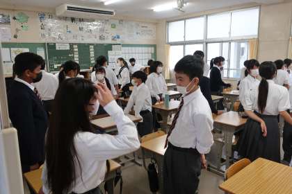 朝の活動時に行われた「たかまるタイム(第19回)」・1年生の様子です。