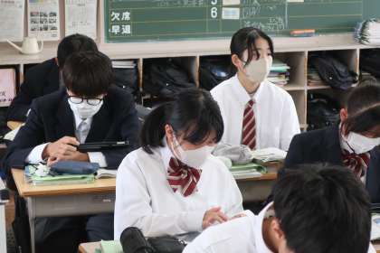 2年4組の社会・地理分野の授業の様子です。