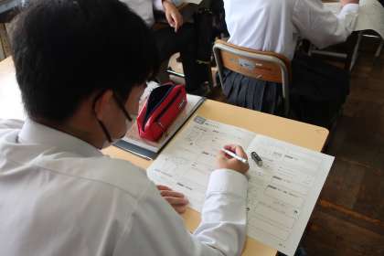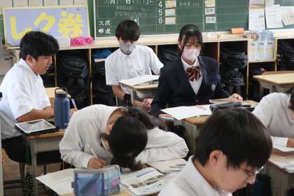 「運動とエネルギー」の単元で、これまで学習したことの総まとめに取り組んでいました。